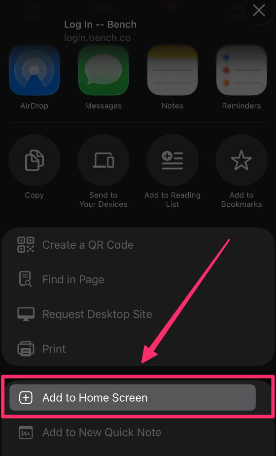 If you previously used the Bench app: Our native iPhone app has been discontinued and is no longer available in the App Store. The good news is our website is built for mobile, and you can add it to your home screen for the same quick-access experience.
