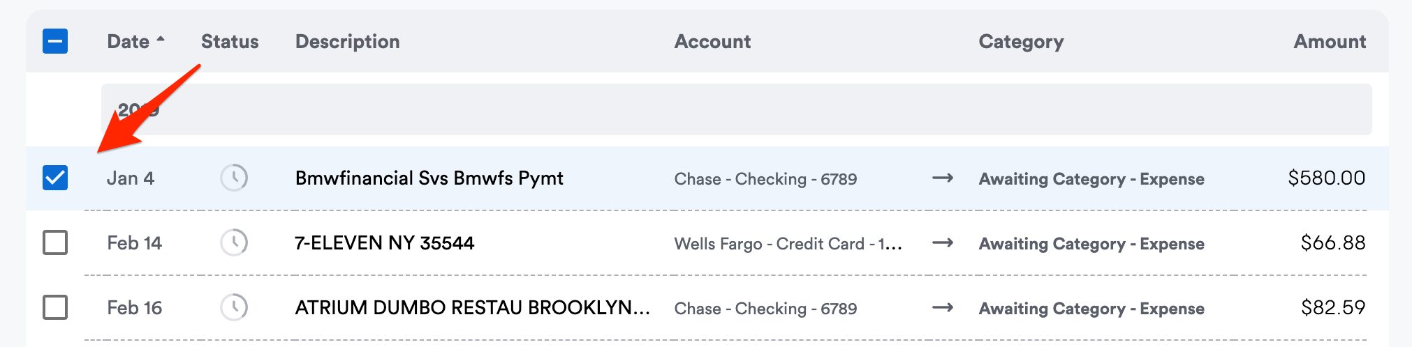 Select a transaction (or multiple) using the checkbox to the left of a transaction.
