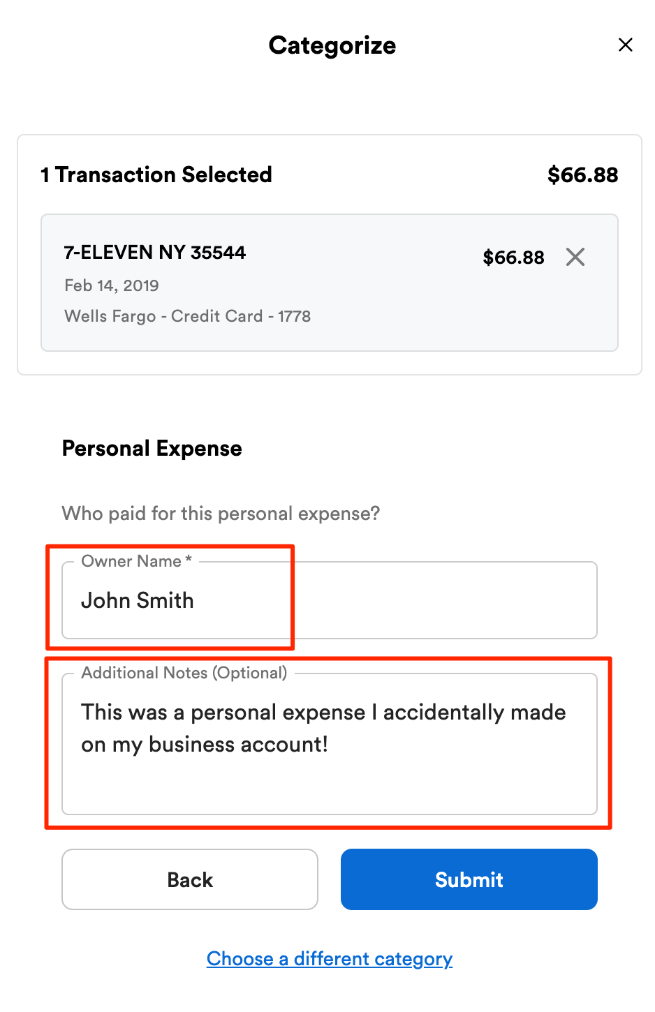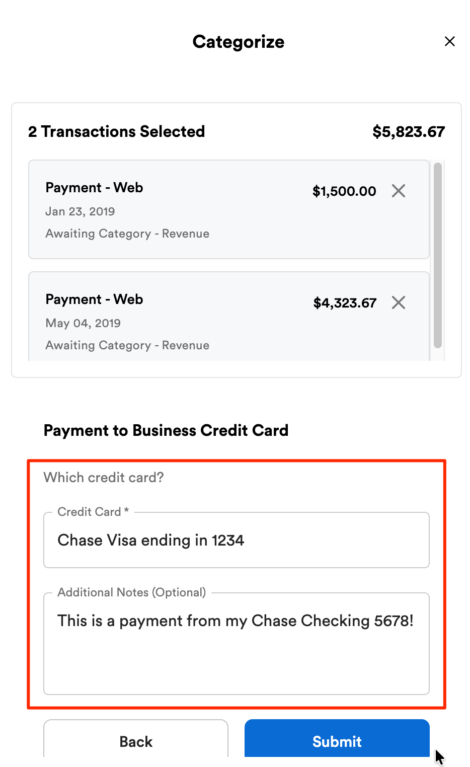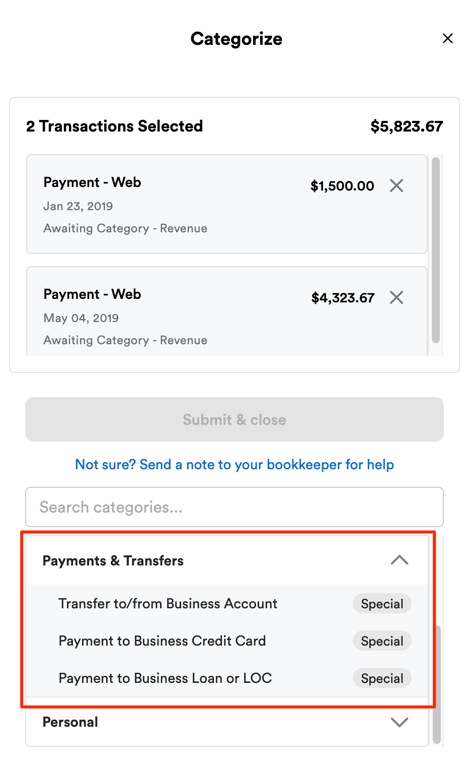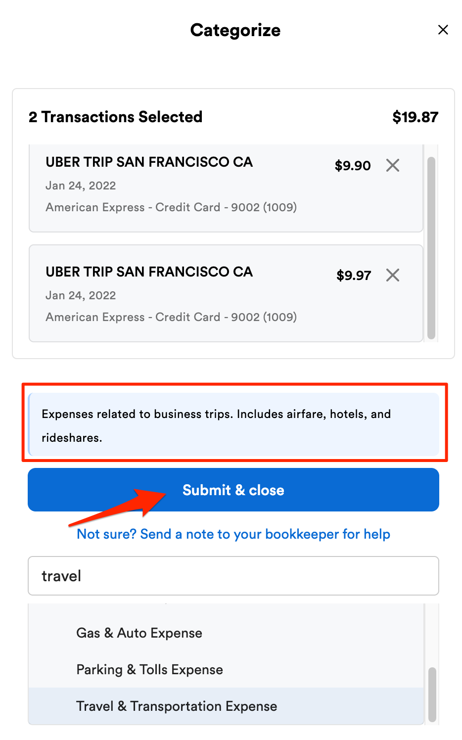 If you are unable to find an applicable category, you can submit a note for your bookkeeper to complete the categorization.