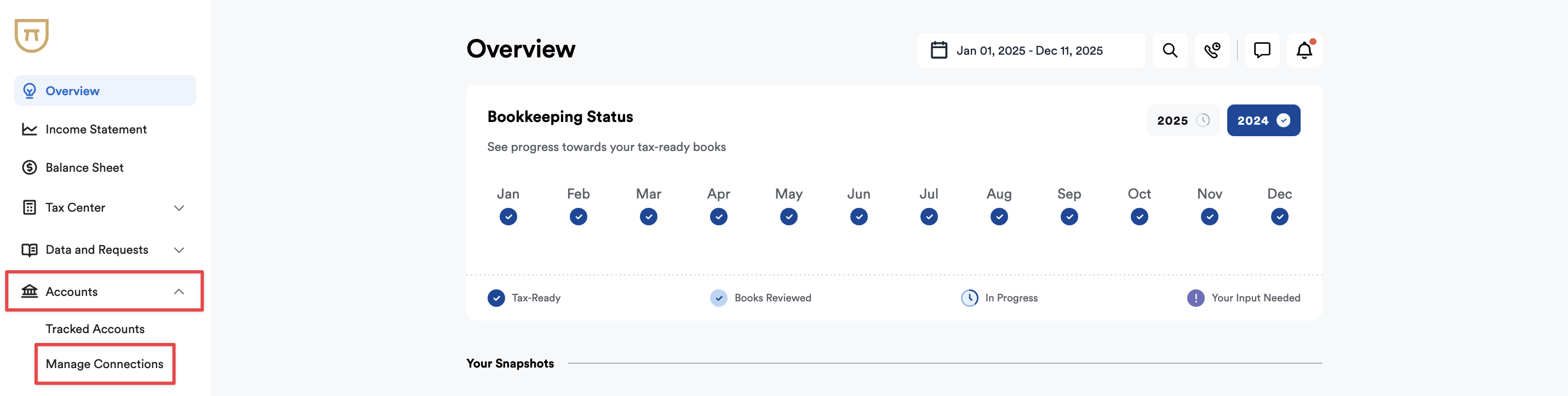 - You can also scroll down the page to add bank accounts and connect merchant processors and payroll accounts.